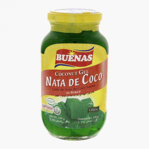 Experience the vibrant flavors of Southeast Asia with Buenas Pandan Coconut Gel, a 340g ready-to-eat dessert featuring fragrant pandan-infused coconut jelly in sweet syrup. This Filipino favorite combines: