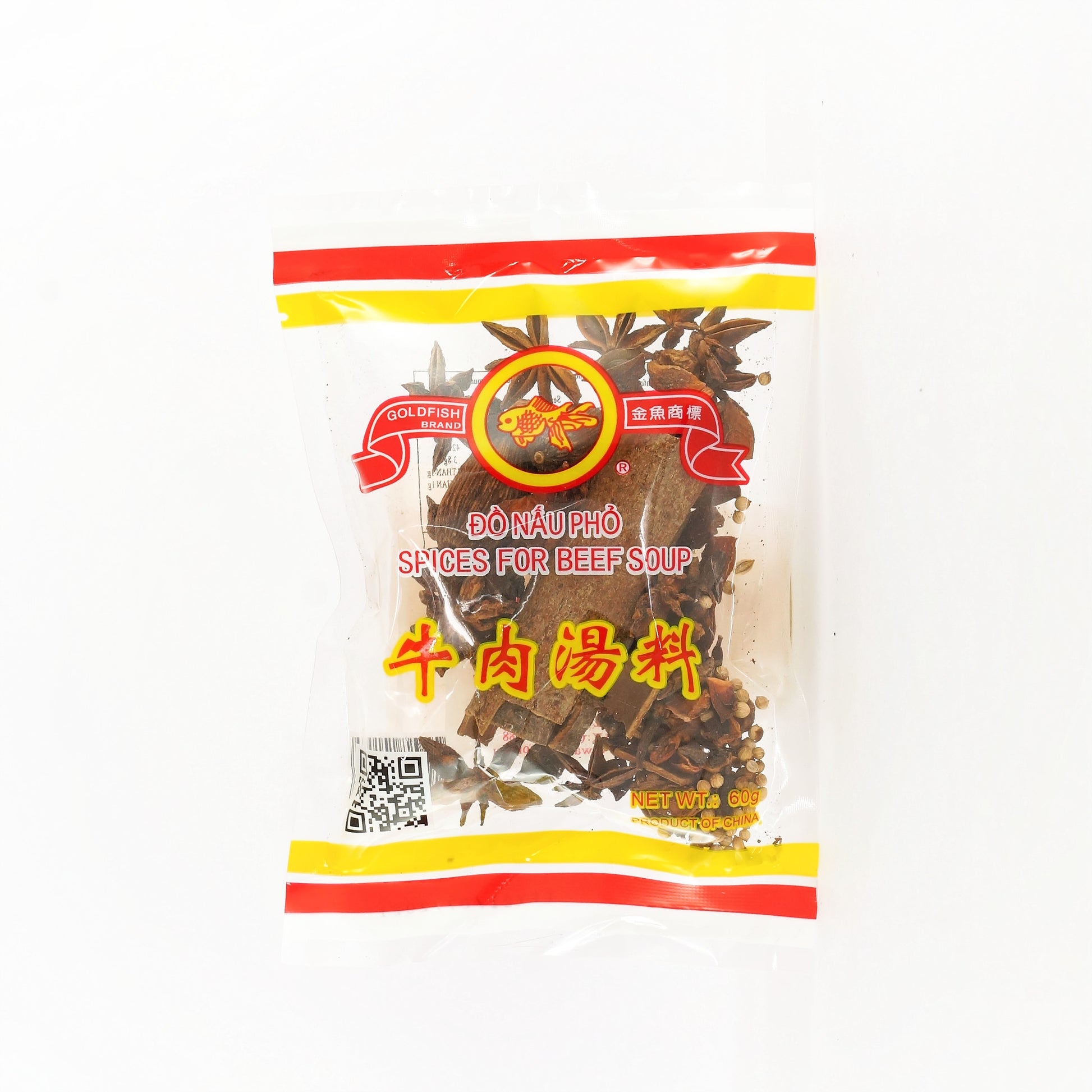 Gold Fish Brand presents a traditional spice mix specially crafted for beef-based soups, delivering the deep, aromatic flavors essential for authentic Vietnamese pho, Taiwanese beef noodle soup, and Chinese braised beef dishes. This balanced blend of spices ensures a fragrant, well-rounded broth every time.