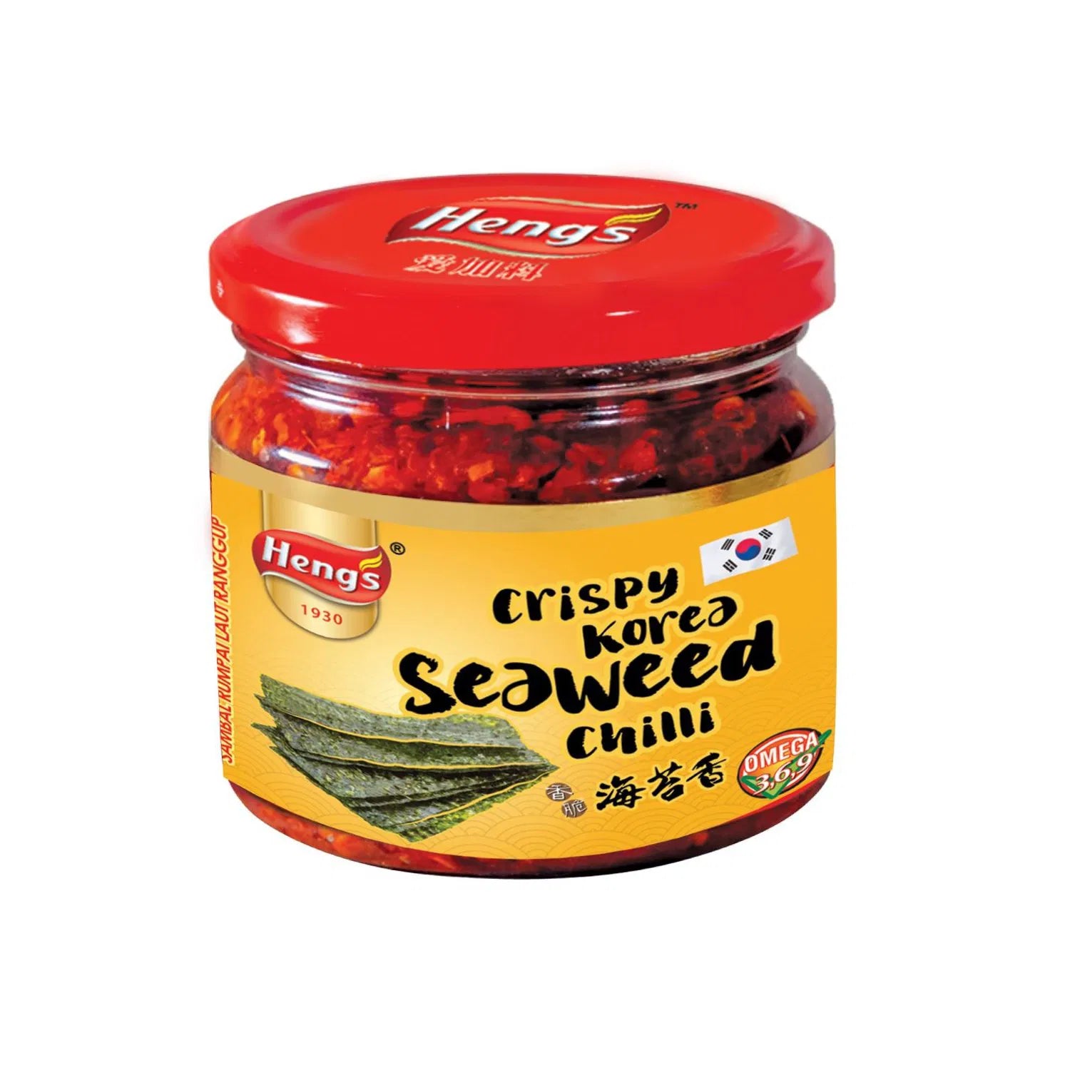 Satisfy your snack cravings with Heng's Crispy Seaweed Chilli – a 160g pack of ultra-thin, oven-roasted seaweed infused with fiery chili and savory seasonings. This popular Asian snack delivers an addictive combination of crisp texture, oceanic umami, and a lingering spicy kick that keeps you reaching for more.