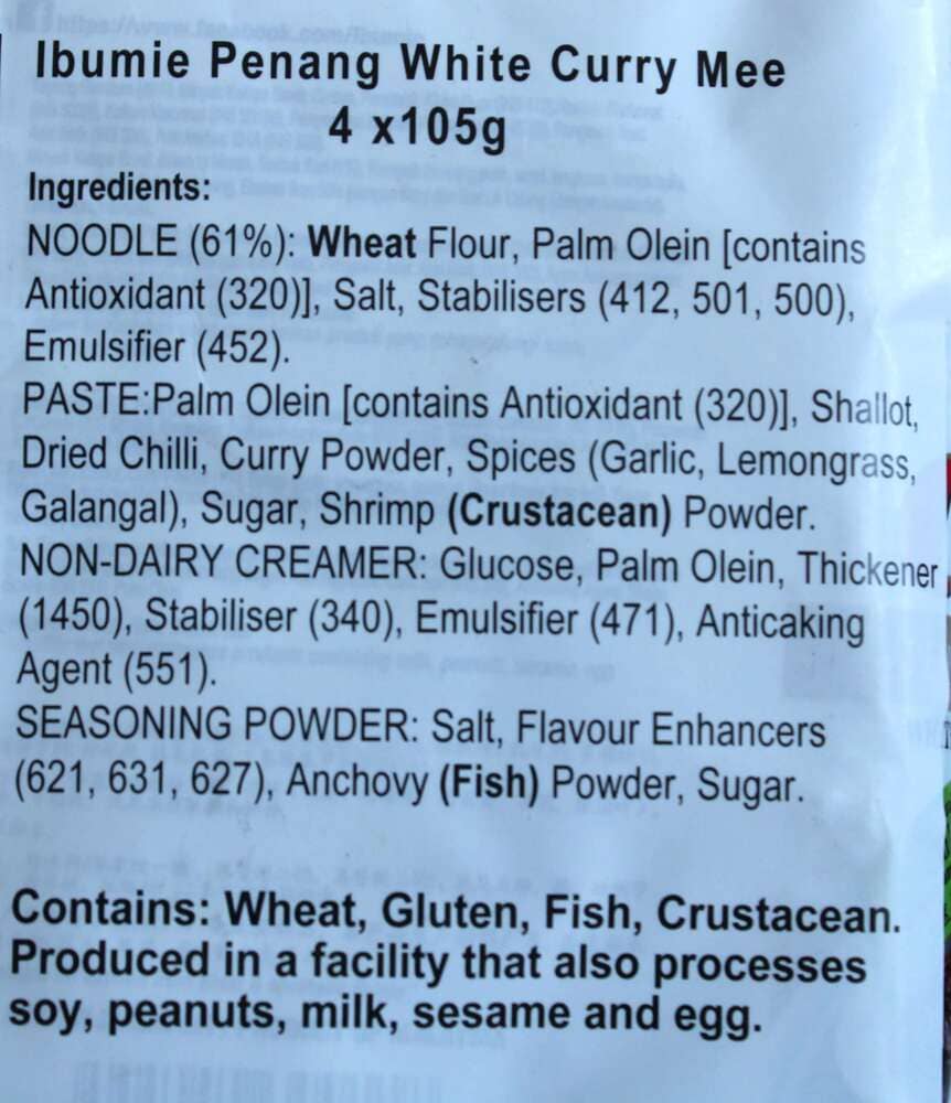 PASTE:Palm Olein [contains Antioxidant (320), Shallot, Dried Chilli, Curry Powder, Spices (Garlic, Lemongrass, Galangal), Sugar, Shrimp (Crustacean) Powder.