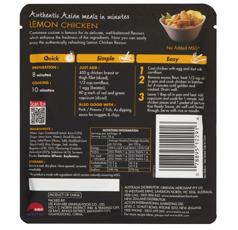Lee Kum Kee Ready Sauce for Lemon Chicken 145g