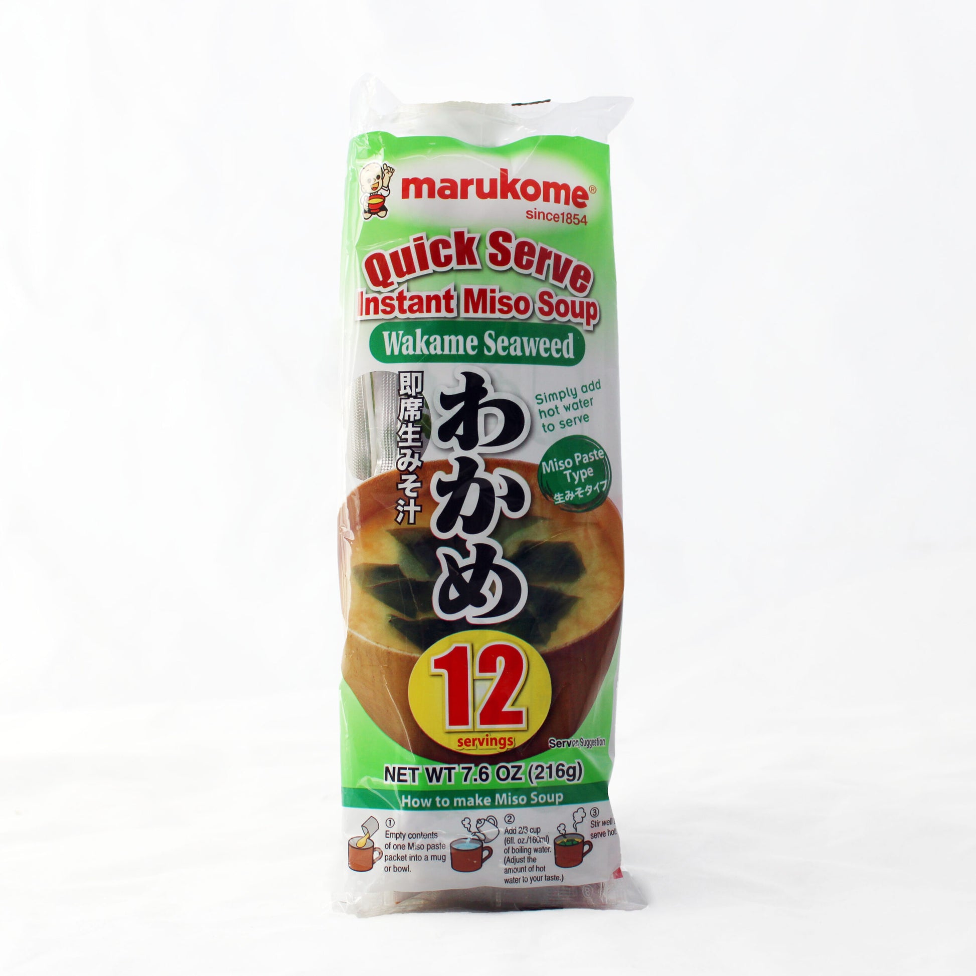 Enjoy the comforting taste of traditional Japanese miso soup in an instant with Marukome Instant Miso Soup - Seaweed. This 216g pack contains 12 single-serving packets, each filled with a delicious blend of miso paste, dried seaweed, and other natural ingredients. Simply add hot water, and in seconds, you’ll have a warm, savory bowl of miso soup that’s perfect for breakfast, lunch, or a quick snack. With its authentic flavor and convenience, Marukome Instant Miso Soup brings the essence of Japanese cuisine to your home.