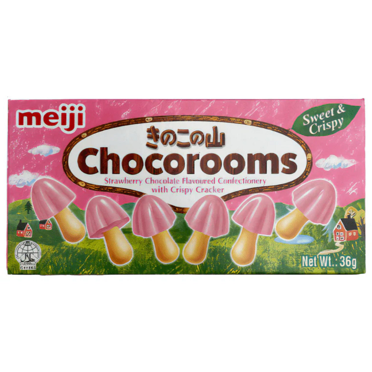 Fall in love with Meiji Chocorooms Strawberry Chocolate – Japan’s cutest chocolate treat that combines crispy mushroom-shaped biscuits with creamy strawberry-flavored chocolate! Each bite-sized piece offers a playful mix of textures and a sweet, fruity flavor that kids and adults adore.