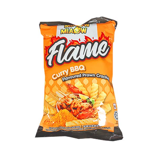 Miaow Miaow Flame Curry BBQ Prawn Crackers combine the rich, smoky taste of barbecue with aromatic curry spices and a fiery chili punch. These ultra-crispy shrimp crackers are a street-food favorite across Southeast Asia—perfect for snacking straight from the bag or pairing with drinks.