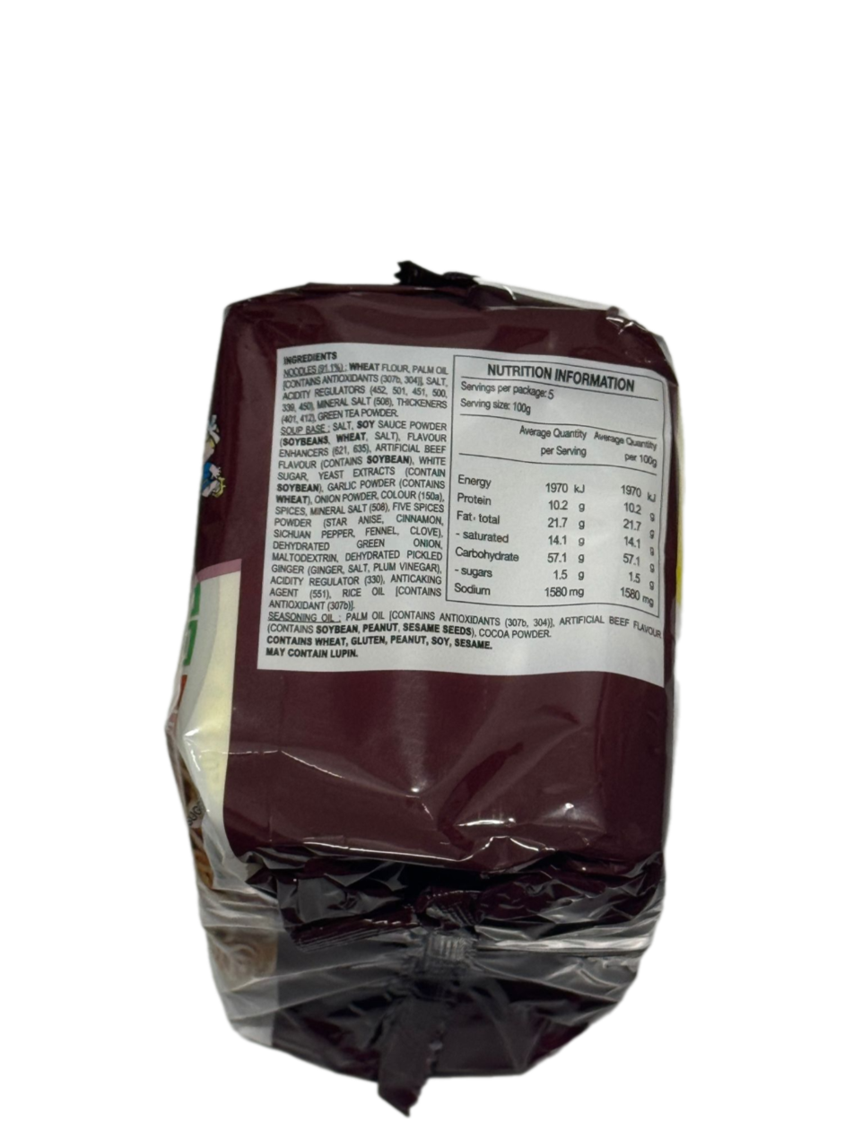 Savor the aromatic blend of Chinese spices with Nissin Demae Ramen Five Spice Beef Flavour. This 5-pack features Hong Kong-style straight noodles in a rich, savory beef broth infused with traditional five-spice powder (star anise, cloves, cinnamon, Sichuan pepper, and fennel seeds), offering a uniquely complex flavor that's both warming and satisfying.