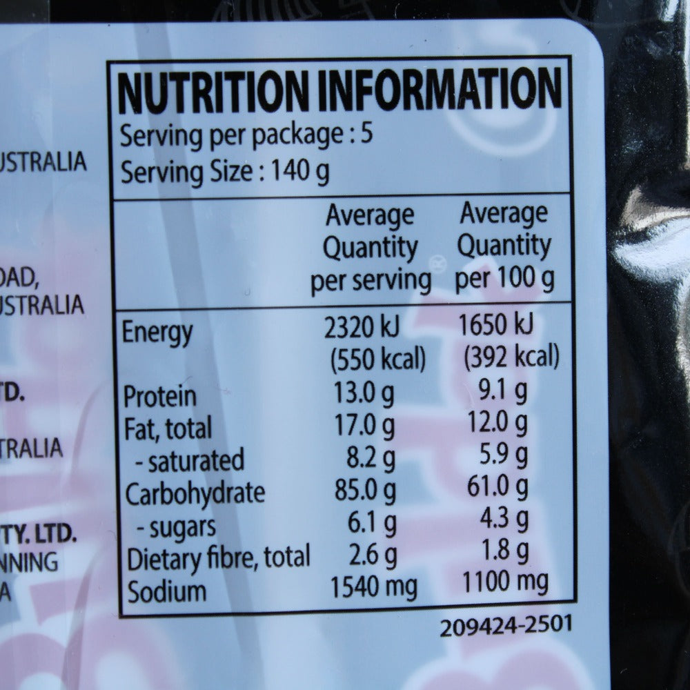 Contains: wheat, gluten, soy, sesame.