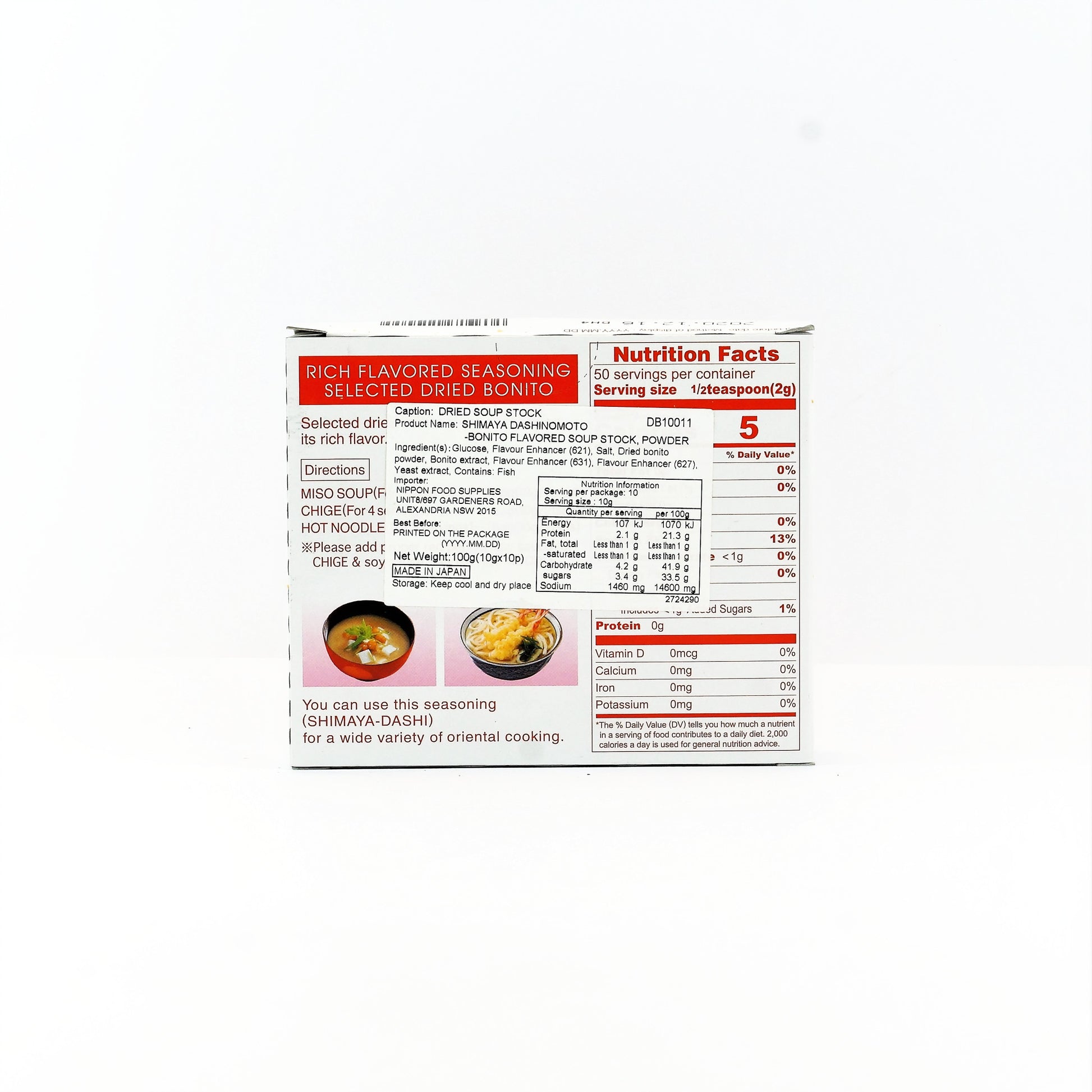 Unlock authentic Japanese flavor in seconds with Shimaya Dashi No Moto, a 100g packet of premium instant dashi granules. This versatile soup stock blend captures the essence of traditional kombu and bonito broth without the hours of simmering—your shortcut to restaurant-quality miso soup, noodle broths, and simmered dishes.