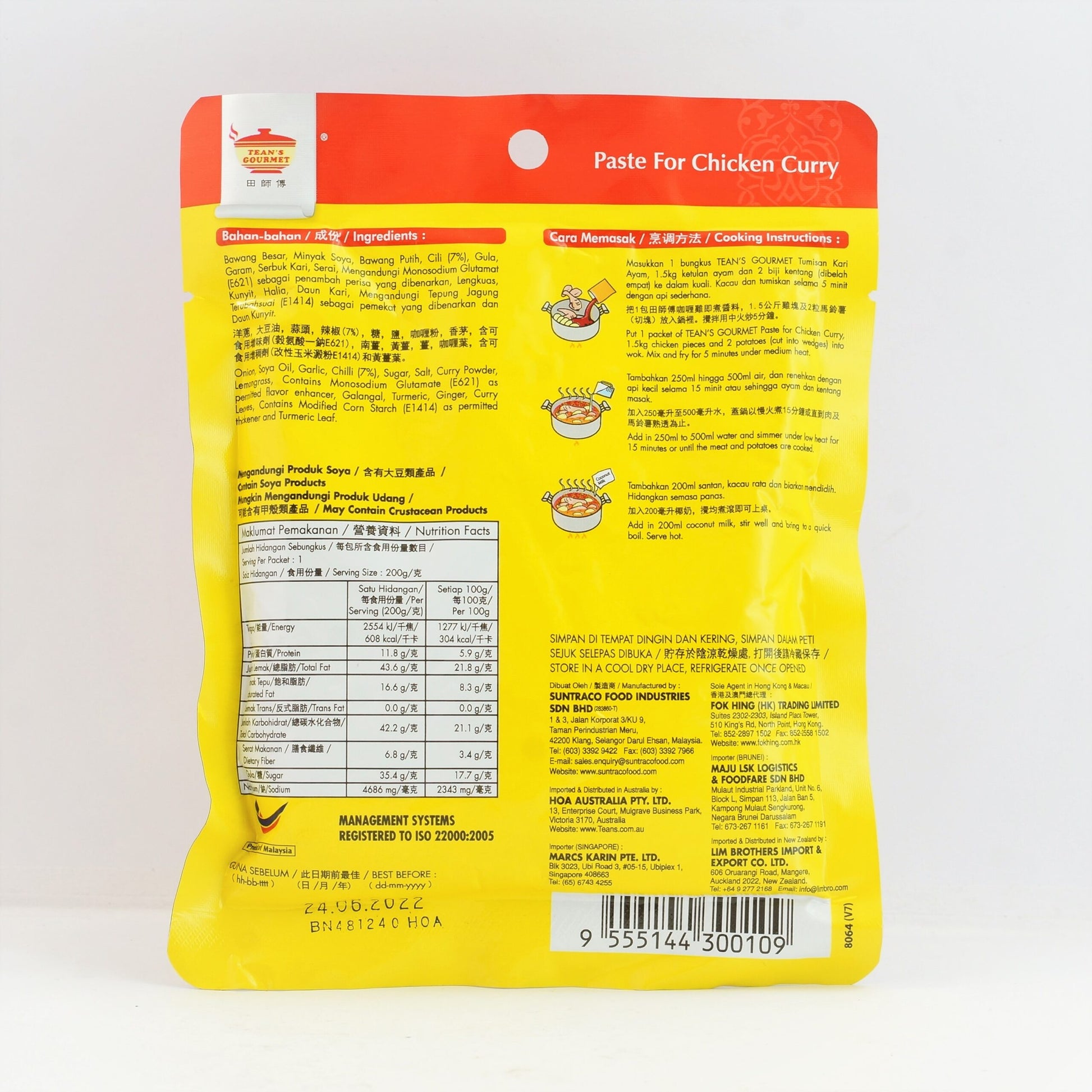 Tean's Gourmet Curry Laksa Paste (Kari Laksa) 200g